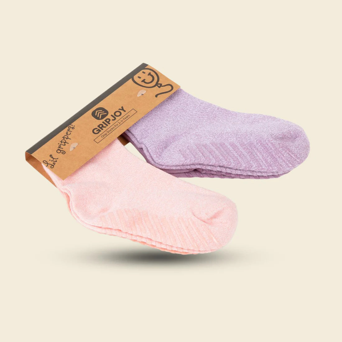 Gripsokkar fyrir börn, bleikir&fjólubláir - 4 pör